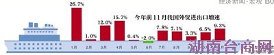 数据显示,今年个别月份的进出口增速甚至重回双位数增长,但从商务部的预估来看,仍很难完成8%的增长目标。1-11月,我国外贸总额3.77万亿美元,扣除汇率因素同比增长7.7%。其中出口增速8.3%,进口增速7.1%。