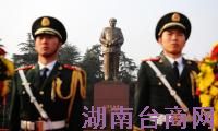 12月24日,湖南省委、省政府在韶山隆重举行向毛泽东同志铜像敬献花篮仪式,纪念毛泽东同志诞辰120周年,深切缅怀伟人的丰功伟绩。湖南省委书记、省人大常委会主任徐守盛,省委副书记、省长杜家毫等向毛泽东同志铜像敬献花篮。仪式由湖南省委副书记孙金龙主持。省委、省人大常委会、省政府、省政协、省军区在长领导和部分老同志,毛泽东同志亲属及部分特邀嘉宾与社会各界代表参加了仪式。图为毛泽东铜像前的警卫。杨华峰 摄