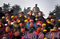 2013年12月24日,社会各界人士来到湖南韶山,瞻仰毛泽东铜像,参观毛泽东故居,纪念毛泽东同志诞辰120周年。夜天 摄 图片来源:CFP视觉中国