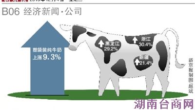 据新华社全国农副产品和农资价格行情系统监测,8月份以来,全国塑袋装纯牛奶价格呈现较为明显的上涨走势。与8月1日相比,11月29日,塑袋装纯牛奶均价上涨9.3%。分地区来看,近九成省区市塑袋装纯牛奶价格上涨,其中浙江、黑龙江、新疆价格涨幅居前,分别为30.4%、29.2%、21.4%。