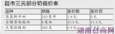 “的确是成本压力太大。”三元食品有关负责人何小唐告诉记者,在超市渠道,如243毫升的袋装鲜牛奶由原来1.8元涨到2元。