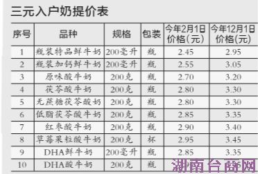 平均涨8%袋装鲜奶和入户奶分别涨0.2元、0.5元