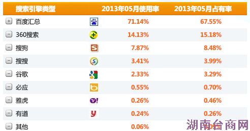 图1:CNZZ发布的2013年5月国内搜索统计数据