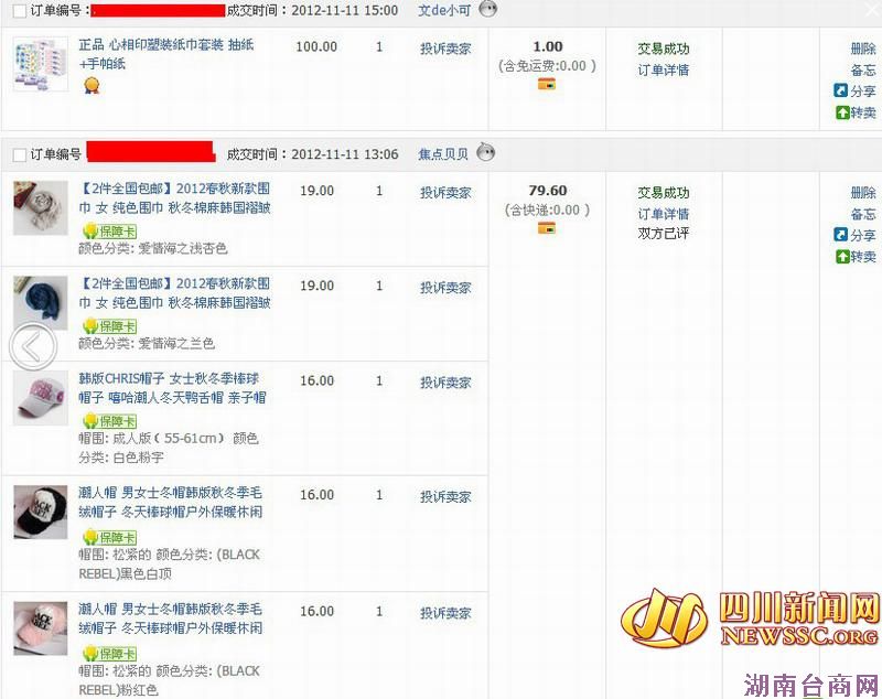 “敢不敢晒下你们去年双11的账单!”网友@姐很愤怒在四川新闻网麻辣社区发帖,晒出了自己2012年在淘宝上买的宝贝截图。截图所示,该网友去年网购了19件商品,其中还包括商业险和交强险两份车险,而她还透露,这还只是一部分账单。