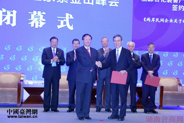 2013两岸企业家紫金山峰会5日晚在南京闭幕,两岸企业家峰会七个产业合作推进小组召集人相互交换交流合作备忘录。(中国台湾网 王伟 摄)