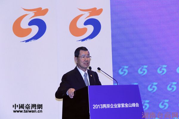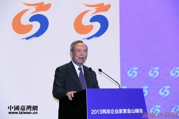 两岸企业家峰会大陆方面理事会长曾培炎在闭幕式上致辞。(中国台湾网 王伟 摄)