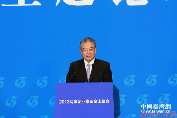 两岸企业家峰会信息、家电产业合作推动小组召集人(台湾)、台湾工业总会理事长许胜雄5日在2013两岸企业家峰会主题论坛做题为“深化两岸产业合作,共同面对全球挑战”的演讲。(中国台湾网 王伟 摄)