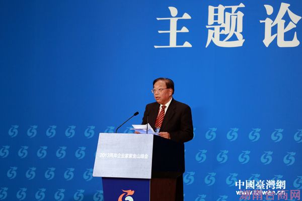 2013两岸企业家紫金山峰会主题论坛5日上午在南京紫金山庄举行,峰会成长型和中小企业合作推进小组召集人(大陆)蒋以任出席论坛并演讲。(中国台湾网 王伟 摄)