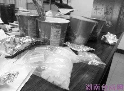 桶装方便面内夹藏冰毒。郝金朋 摄