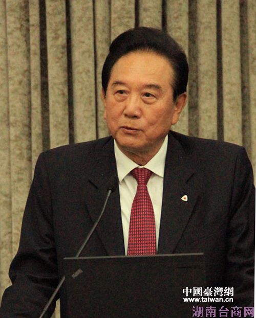 海协会前会长陈云林在“两岸产经合作与创新发展论坛”上致辞。(中国台湾网 扶海涛 摄)