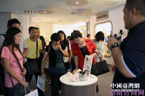 在金属工业发展研究中心参观科研产品。(中国台湾网 杨丽 摄)