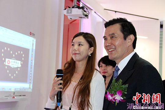 图为台湾地区领导人马英九参观台湾电子三展。冽玮 摄