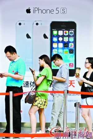 排队购买iPhone 5S。
