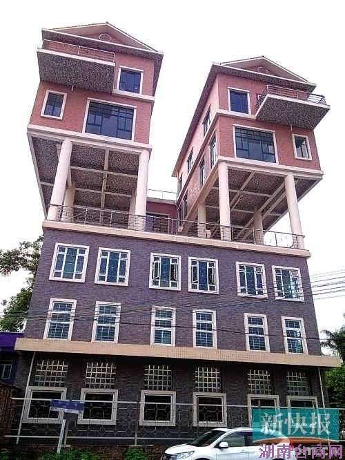 前晚10时许,网友“汉默准将0769”发微博称,东莞石碣镇存在一栋比深圳“空中庙宇”还犀利的建筑,“一房子上面新建了2套别墅”,怀疑是违建。