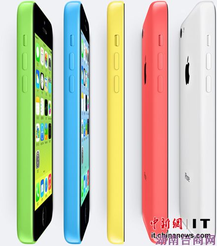 与采用金属材质打造的iPhone 5不同,iPhone 5c采用了聚碳酸酯材质机身,并且拥有白、粉、蓝、绿、黄五种配色可选。