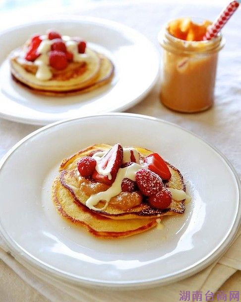 吉尔迪普莱的牛奶焦糖薄煎饼 牛奶焦糖是一种甜的、具有粘性的焦糖酱。它几乎可以与任何食品搭配,无论是美国甜点巧克力布朗尼,还是传统的小酥饼。牛奶焦糖薄煎饼是在已做好的煎饼上涂抹制成的牛奶焦糖,缀以些许浆果,再撒上糖粉,滴一些奶油,只是想一想便觉甜到骨子里去。"