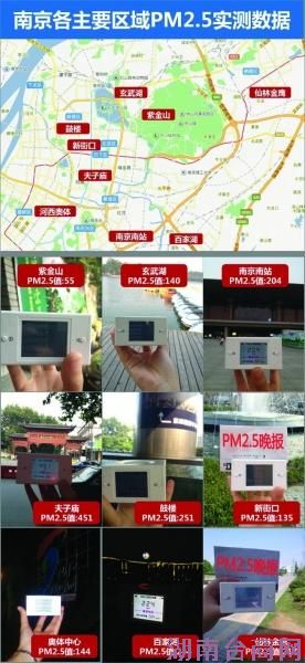 南京楼市地图出“PM2.5”版本了?昨日,有网友在新浪微博上发布了自己实测的南京城多个板块的PM2.5数据,被业内人士奉为首份PM2.5购房地图。在实测的数据中,夫子庙以451的PM2.5指数高居榜首,紫金山以55的PM2.5指数排名最后,有网友感叹道:“能住进紫金山就好了……”