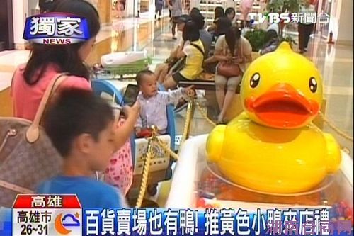 据台湾TVBS网站报道,台湾高雄光荣码头即将迎接“大黄鸭”到来,看准“大黄鸭”魅力掳获大人小孩的心,许多业者纷纷推出“大黄鸭”相关产品。不管是吃的、用的、住的,只要跟上这股“大黄鸭”旋风,都帮助了业绩成长,想不到“大黄鸭”旋风还没到,却已经掀起疯狂的小鸭热潮,也为高雄观光带来无限商机。