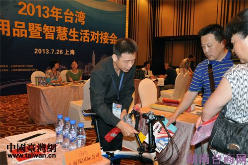 中国台湾网7月30日上海消息 26日下午,“2013年台湾自行车暨休闲体育用品对接会”在沪举办,活动现场共吸引来自两岸的几十家企业及机构进行“一对一”贸易洽谈对接。