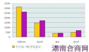 财报显示,从产品发货量来看,第三财季内苹果iPhone发货量达到3120万部,远远好于市场预期的2600万部,较去年同期增长20%。iPad发货量为1460万部,同比下滑14%,与预期相符。Mac发货量达到375万部,同比下滑7%。iPod发货量457万部,同比下滑32%。