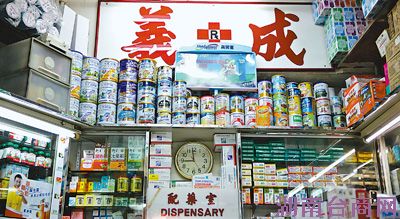 “义成”药房老板刘爱国,身兼港九药房总商会理事长。“义成”药房的奶粉销售收入占总销售收入约一成。刘爱国说,香港约60%的奶粉,是通过药房售出,其余40%由超市销售。