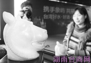 你看得出这是用盐做的“雕塑”吗? 2008年11月在台北的第二次“陈江会”,陈云林一句“什么牌子”让台湾公营事业的台盐矿泉水知名度大增,被“捧红”之后,台盐西进大陆的布局随之展开。昨日下午,台盐跟厦门象屿集团签订战略合作意向,包括矿泉水、食用盐、保健品、保养品和美容化妆品等上百种盐制产品得以入驻大嶝台湾免税MALL。预计今年5月起,游客就可在大嶝免税市场购买到台盐的产品。
