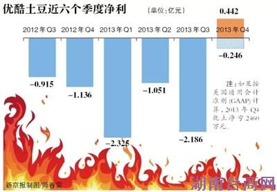 按美国通用会计准则,优土在2013年Q4依然报亏,净亏损为2460万元,较2012财年同期下降78%。