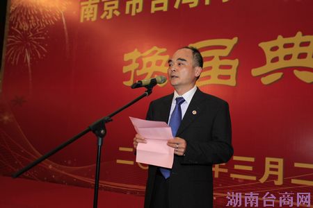 换届典礼上,缪瑞林市长为焦佑伦授会长铭牌,焦佑伦会长成功连任南京台协第六届会长;市委常委、统战部长李世贵为孙根明授监事长铭牌。华静副市长致辞,她希望新一届南京台协继续提升协会的凝聚力和向心力,提高服务会员的能力和水平,在南京的招商引资、招才引智中发挥更加重要的作用。