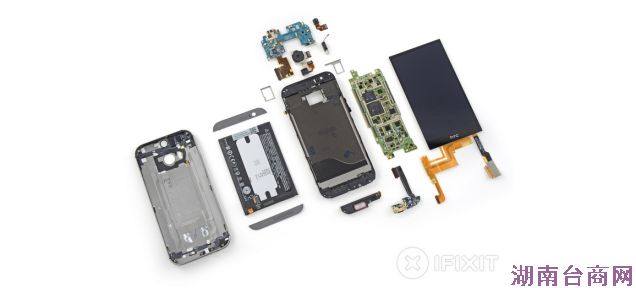 拆解成零件的过程中,取下后盖而不造成损伤是很难的。取下电池也非常困难,因为它藏在主板下面,而显示屏则是最难拆开的部分,压在所有组件的下面。机器内部大量使用胶布和胶水,iFixit给HTC One M8打出的可修复指数是2分,满分是10分。