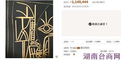 截至24日凌晨,淘宝网一元起拍毕加索的麻胶版画《脸》,经过166次竞价,最终以约115万元成交。这场竞拍让线上拍卖吸引了足够的眼球。