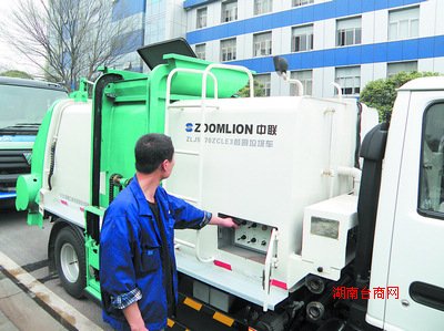 记者昨日在中联科技园看到,由中联重科环卫机械公司研制的“中联牌”餐厨垃圾车外形美观、操作灵活自如。这种车专用于餐厨垃圾处置,装载能力可达3吨之多,整车综合性能达到国内同类产品的先进水平。中联重科环卫机械公司是中联重科旗下一家集环卫环保设备研发、制造和销售的专业企业,目前正致力于打造中国最大的环卫环保机械研发生产基地。