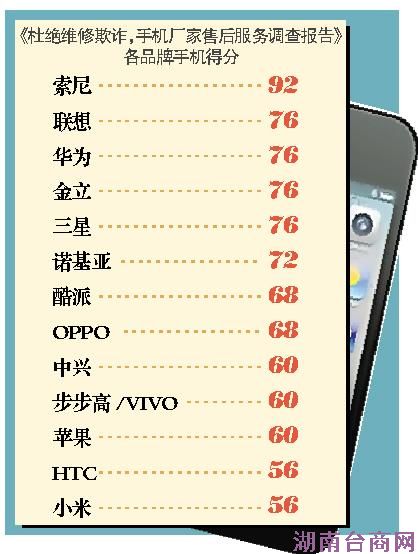 38家消费维权单位联合发布13个品牌手机售后调查报告 小米和HTC垫底