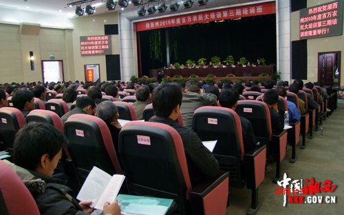 3月25日至26日,来自花垣县、保靖县、龙山县的540余名农民技术员和橘农参加在花垣县举办的全州2010年度百万农民大培训第三期培训,及时了解国内外现代农业发展进程、国家惠农支农政策和当前柑橘产业综合形势,学习如何完善农业农村协会组织、树立过硬品牌以及先进柑橘培管技术。州委常委、副州长吴彦承,州人大常委会副主任罗天明出席培训活动。州人民政府副秘书长文武斌主持。 为期两天的培训中,罗天明从种植、养殖、畜牧三个领域列举实例,介绍了自己在国外所了解到的现代化农业水平,深刻分析了我州农业及柑橘产业的发展情况。他指出,我州柑橘产业通过多年不懈的努力和培管,已经成为支撑农村经济发展,提高农民收入的支柱产业,但离现代化农业的标准还有不少的差距,全州各级各部门和广大农民技术员及橘农要转变观念,找出差距抓基础、学先进、超先进,大力培养高素质、有文化、懂技术、会经营的现代化农民,想方设法提高柑橘产品的质量和效益。参讲专家在讲课时还提出,我州柑橘要打出响当当的品牌才有好的销路,要用好的品质和诚信塑造品牌,用品牌占领市场。 吴彦承指出,现代化农业的发展需要科技支撑,州委、州政府举办全州百万农民大培训活动就是为了让我州广大的村干部和群众了解和发展现代农业,实现我州农业产业化新跨越。他强调,柑橘产业是我州农业最大的支柱产业,必须高度重视做大做强,不能把产业当副业。在柑橘生产销售过程中要严格标准化培管提高质量,注明产地统一品牌,建立市场网络营销,优化储藏加工保质增效,树立诚信长远收益。农民技术员要认真履行职责发挥作用,学好技术和政策,有计划的组织全面培训服务于民。他希望,县乡村干部、农民技术员和橘农要迎难而上、锐意进取,通过5~7年时间把柑橘产业打造成百亿产业,让湘西富硒椪柑名扬海内外,造福湘西农民。