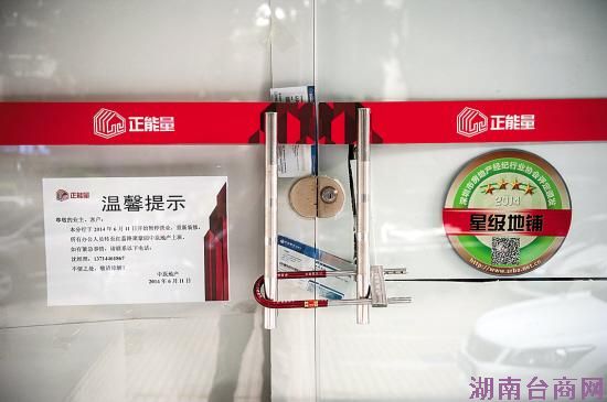 新闻路一家中原地产铺位贴出温馨提示,大门紧闭
