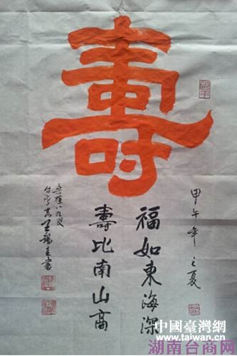 中国台湾网7月7日张家界消息 日前,应湖南张家界市台办的邀请,近90岁高龄的台湾桑植籍著名书法家王锡圭来到家乡挥毫泼墨,为乡亲们留下一幅幅珍贵作品。