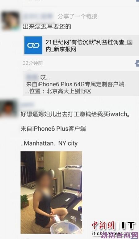 好奇之下,中新网IT频道进行搜索发现,网络上有不少关于“怎么显示来自iPhone6客户端?”的操作步骤的帖子。网友可在朋友圈、新浪微博、QQ空间等社交平台上发布消息的同时通过系统设置、手动输入字样或代码将原有的尾巴改成“来自iPhone6客户端”。