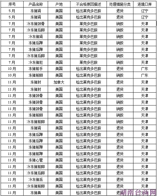 国际上,俄罗斯消费者权益保护部门也在2014年12月5日起暂停从美国进口禽肉半成品和成品。同时,俄罗斯消费者权益保护部门决定从11月14日起暂停从加拿大进口猪肉。原因是从加拿大进口的猪肉被检测出含有对人体有害的“瘦肉精”。