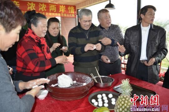 你揉米粉,他拌豆沙馅……台商李先生也在村民的指导下露了一小手,其乐融融的氛围让他觉得很幸福:“都说汤圆象征着团圆,今天有机会亲手试了一下,看着盘中的汤圆一个个立起来,很开心。”