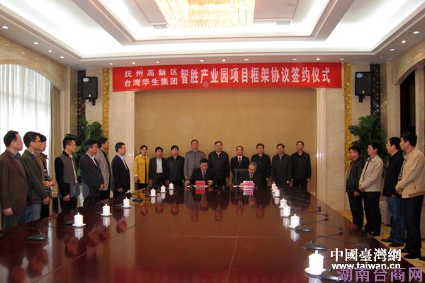 抚州高新区和台湾华生集团智胜产业园项目框架协议签约仪式现场。(图片来源:江西台办)