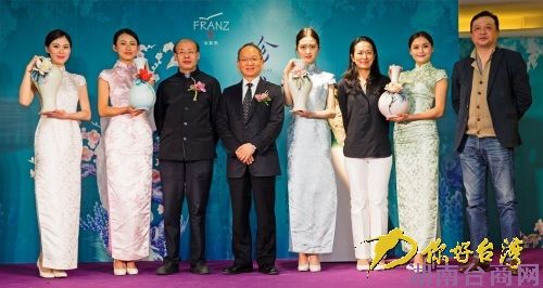 全体贵宾、法兰瓷设计师与四大美人瓷品合影。你好台湾网 图)