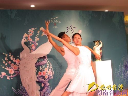 你好台湾网3月24日消息(记者 雅萍)悠悠乐声响起,一对双人舞者以翩翩舞姿传神演绎了世间珍禽白孔雀,也为3月24日下午在北京举办的的“2015法蓝瓷年度发表会”揭开精彩序幕。