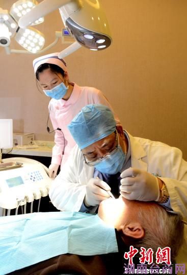 12月27日,福州市口腔医学会常务理事、台商黄炜峻在当日开业的台资康德口腔门诊联盟旗舰总部内,为首位就诊的牙科患者进行诊治。 记者刘可耕 摄