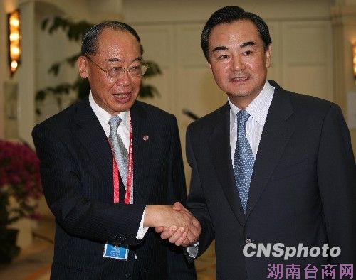 中共中央台办、国务院台办主任王毅4月10日在海南博鳌为前来出席博鳌亚洲论坛2010年年会的台湾两岸共同市场基金会最高顾问钱复一行举办招待酒会。 中新社发 王辛莉 摄