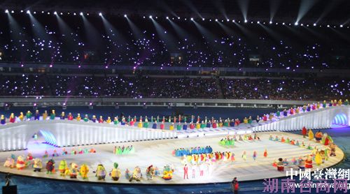 4月28日晚,第六届中国国际动漫节在杭州黄龙体育场举行开幕式文艺晚会,场面规模超越往届。场中舞美设计按照西湖白堤的比例原样移植现场,让观者直呼场面超宏大。(中国台湾网 李桂英 摄)
