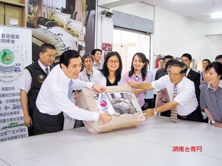 昨天上午,马英九在“陆委会”主委赖幸媛的陪同下,到台南市安平工业区参观传统产业亿进寝具公司,马英九、赖幸媛等官员参观寝具的制造过程中,马英九还亲自踩缝纫机、烫棉被,感受传产劳工的辛苦后,随即和来自各县市的四十五位传统业者代表座谈。