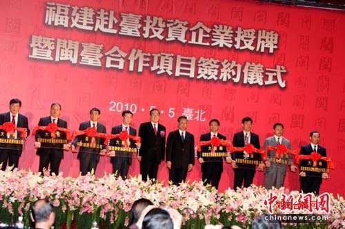 5月5日下午,“福建赴台投资企业授牌暨闽台合作项目签约仪式”在台北举行,福建省长黄小晶、中国国民党副主席曾永权为8家已获两岸行政部门核准的企业授牌,两地企业代表还就数十个合作项目签约。
