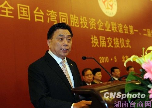 5月14日,全国台湾同胞投资企业联谊会(简称“台企联”)第一、二届会长换届交接仪式在北京人民大会堂举行。图为新任全国台企联会长、台升家具董事长郭山辉。 中新社发 刘震 摄