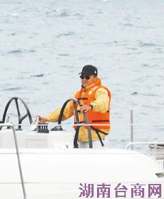 润泰集团总裁尹衍梁驾驶大润发号,循海峡杯帆船赛航线到大陆厦门。图片来源:台湾《联合报》