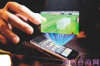 一家台湾科技厂商展出“影浮空显像系统”可将一般普通的商品以极其炫目的方式呈现,吸引消费者目光。图片来源:“中央社”