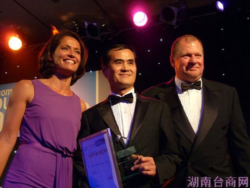 英国创业有成的台商蔡吉春(中),3日晚间获得2010年英国电信企业奖的“电信通路最佳企业家”。图片来源:“中央社” 中新网6月4日电 据“中央社”报道,在英国创业有成的台商蔡吉春3日晚间获得2010年英国电信企业奖的“电信通路最佳企业家”。报道说,他是首位获得这一奖项的亚洲企业家。